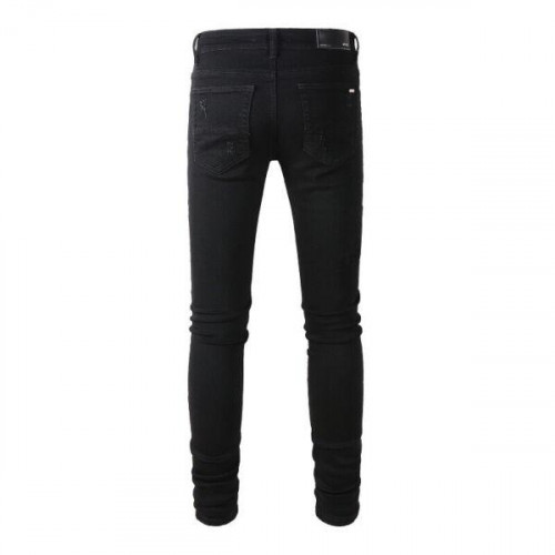 Mens Punk Ripped Letter PU Patchwork Frayed Skinny Fit Stretch Denim Black Jeans