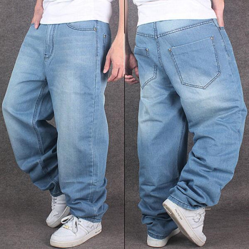 Men's Hip-Hop Rap Jeans Baggy Loose Denim Skateboard Pants Streetwear Trousers