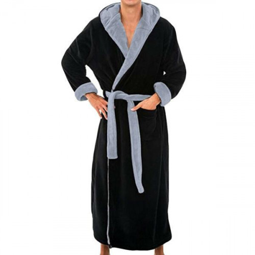 Luxury Long Bath Robe Dressing Gown Hooded Mens Womens Fluffy Fleece Bathrobe A