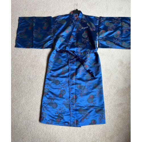 Silk Kimono Robe Authentic Vintag Blue. Korean.Stunning Embroidery.Women Medium