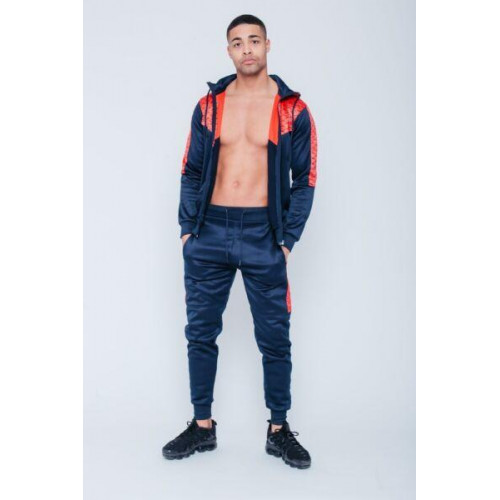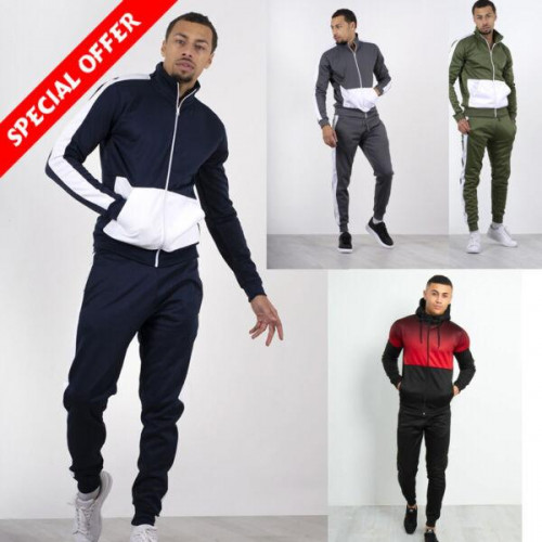 Mens Tracksuits with Two Tone Contrast Zip Through Tracksuit Set