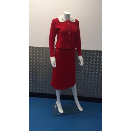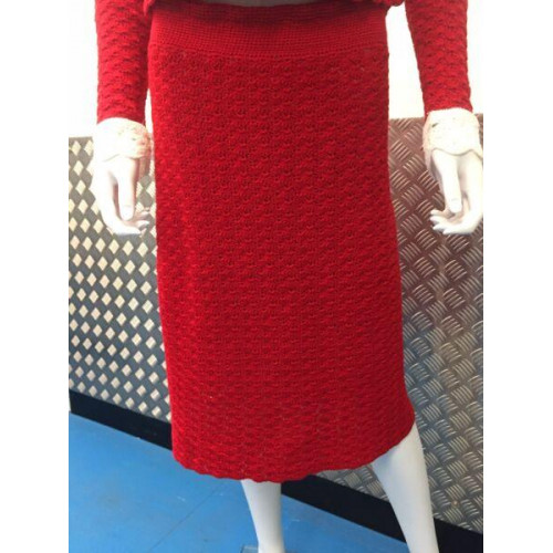 Vintage Red crochet 2 piece blazer Skirt suit 8 10 U.K. Handmade Unique